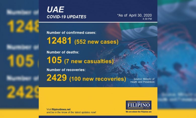 The Ministry of Health and Prevention’s additional 27,000 tests has revealed that there are 552 new cases of the coronavirus disease (COVID-19) in the country, as the country’s total has now reached 12,481.