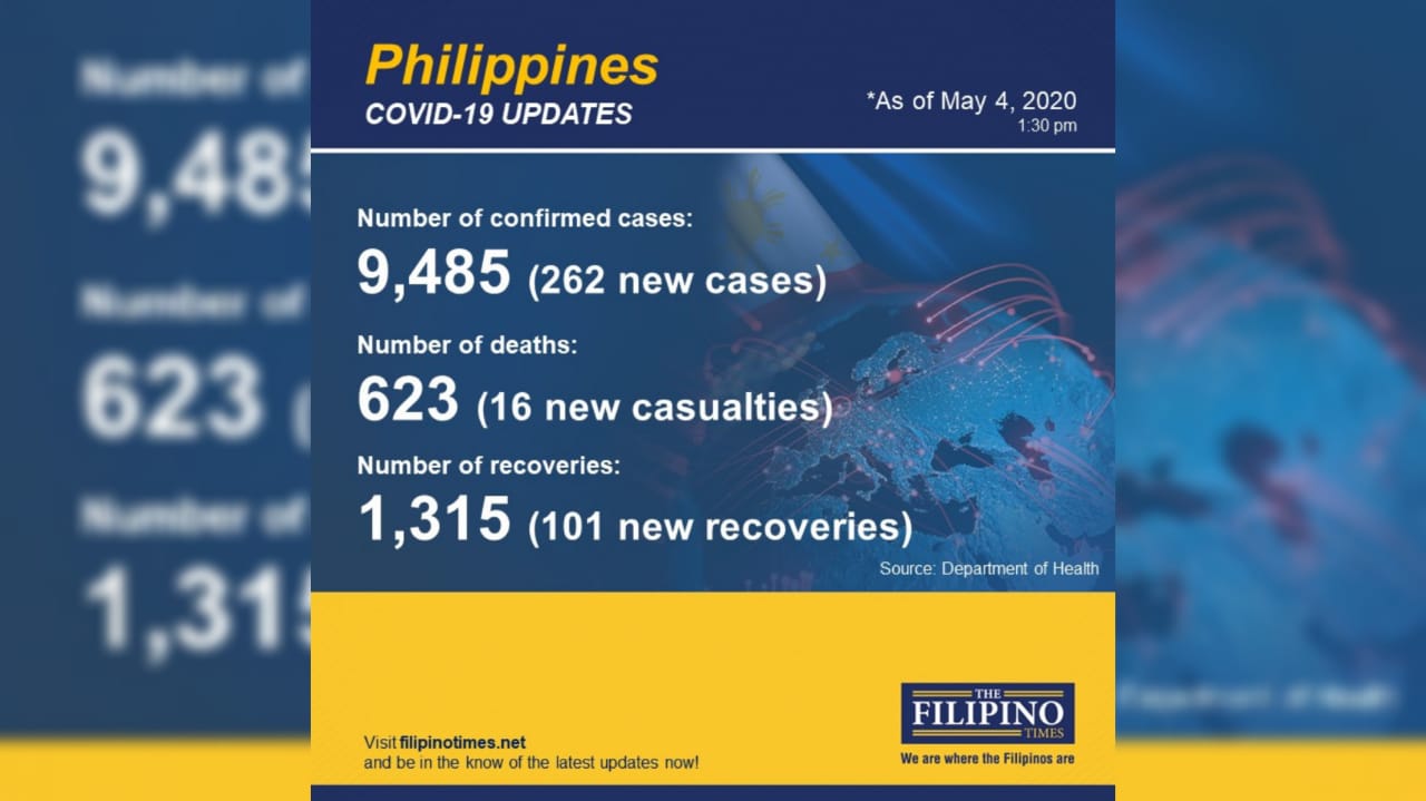 The Department of Health (DOH) also reported 262 new cases, bringing the country’s total confirmed cases to 9,485.