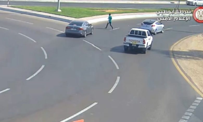The Abu Dhabi Police, in cooperation with the Monitoring and Control Center, released a video on its social media platforms showing the dangers of pedestrians crossing the road in non-designated areas.