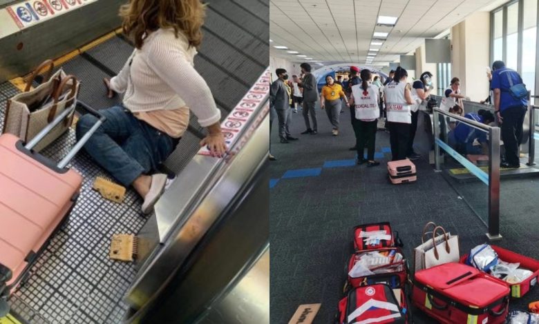 A woman’s leg got amputated after she was caught up in a moving walkway at Don Mueang International Airport in Bangkok on Thursday.