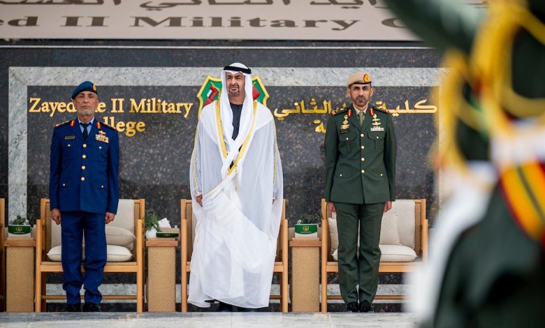 President His Highness Sheikh Mohamed bin Zayed Al Nahyan attended the graduation ceremony of the 50th batch of officer cadets and the first batch of university officer cadets at Zayed II Military College in Al Ain.