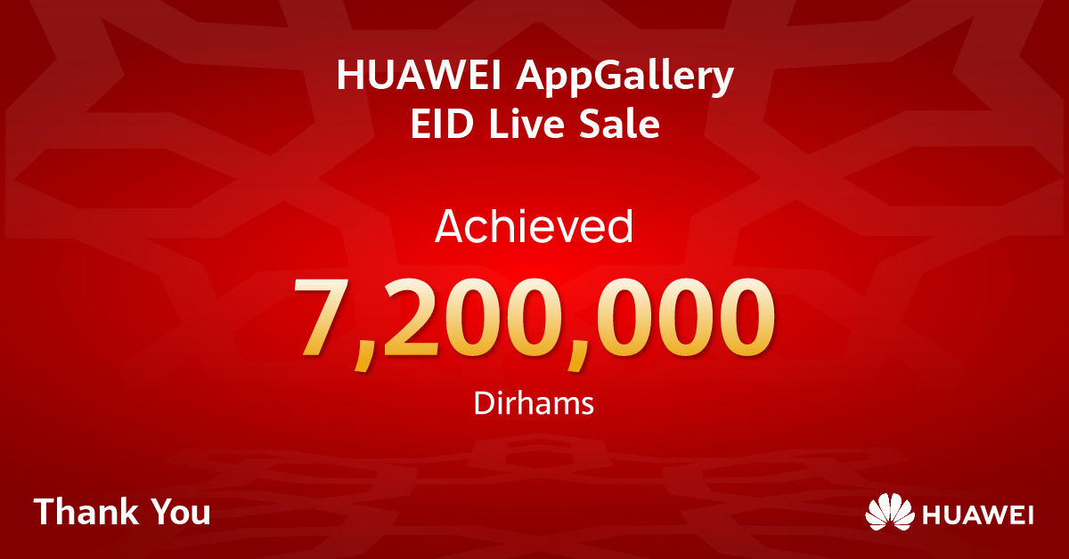 Huawei Consumer Business Group announced the huge success of its HUAWEI AppGallery Eid Live Sale interactive online events achieving 7,200,000 AED in total.
