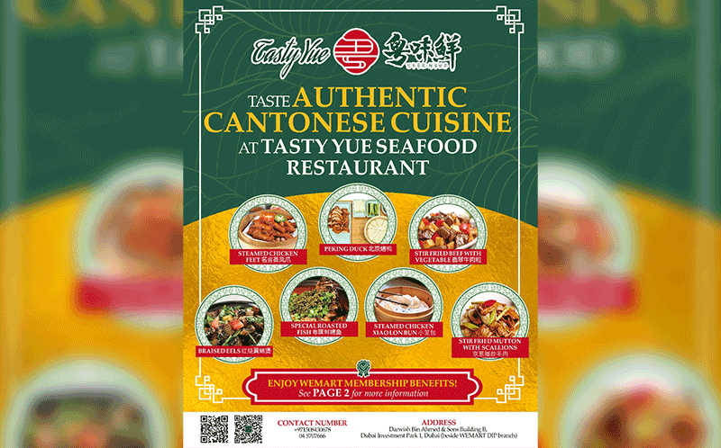 Starting from April 20-28, shoppers who visit any of WEMART’s stores and have a single purchase worth AED 150 will get a free AED1 coupon where they can enjoy a selection of Cantonese fresh dishes for only 1 dirham!