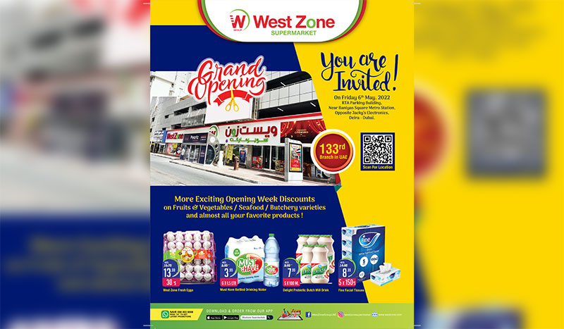 The exciting news is that West Zone, one of the most trusted and growing supermarket chains in the UAE, opens its 133rd branch in the heart of Dubai. The newest branch is located at the RTA Parking building, adjacent to the Baniyas Square Metro Station and opposite Jacky’s Electronics – exactly where many Filipinos live.