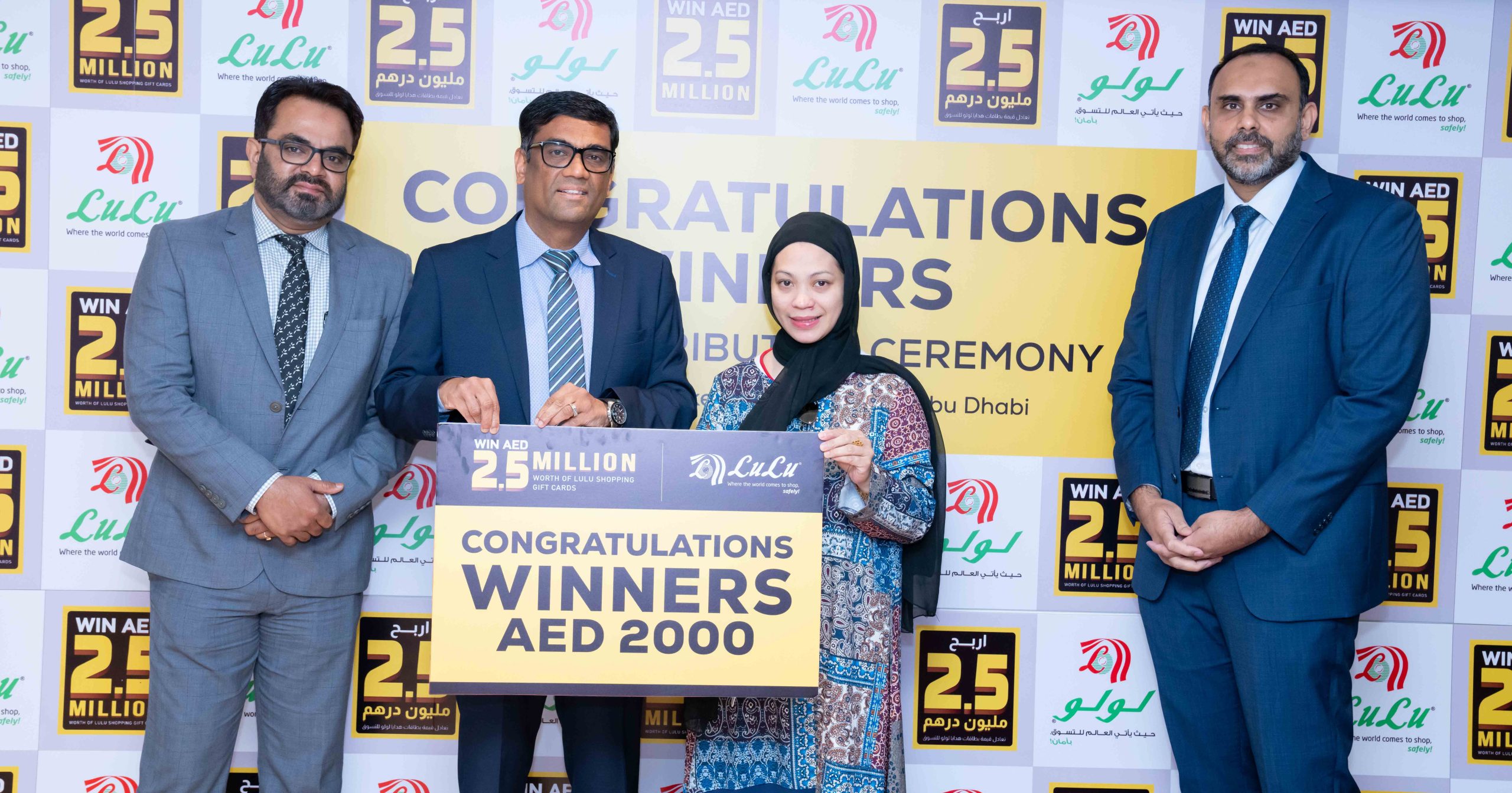 The region’s top retailer LuLu handed over the first batch of prizes to 175 winners from its mega AED 2.5 million raffle promotion. As part of the 45-day promotion that will give a total of 1,250 winners with worth AED 2,000 LuLu Shoppingift cards each, the awarding ceremony was held at Abu Dhabi’s favourite lifestyle and shopping destination, Al Wahda Mall.