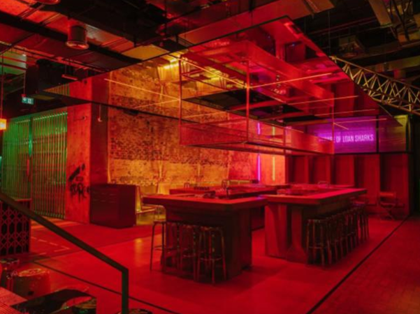 Embodying its eccentric nature in its decor, the Electric Pawn Shop space features fragmented concrete island bars, a neon-lit stainless steel Asian pavilion hanging by a giant indoor construction crane, a massive collection of curated rare original vinyl records, a glass brick centre stage DJ booth, neon-lit water tank art piece, intimate red velvet couple seats, an indoor amphitheatre, sci-fi style cocktail laboratory and street photography showcasing iconic New York Chinatown scenes.