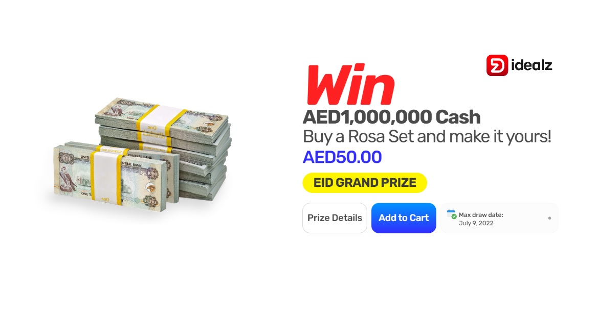 Surging prices have got residents doubling down on ways to reduce their costs of living but Dubai Festivals & Retail Establishment (DFRE) and Idealz, the first-of-its-kind online store, may have just the answer. Participate in the Grand Raffle of the upcoming Eid al Adha and win ONE MILLION Dirhams cash. Simply visit www.idealz.com or the Idealz mobile application and purchase a Rosa Set for AED50 to enter.