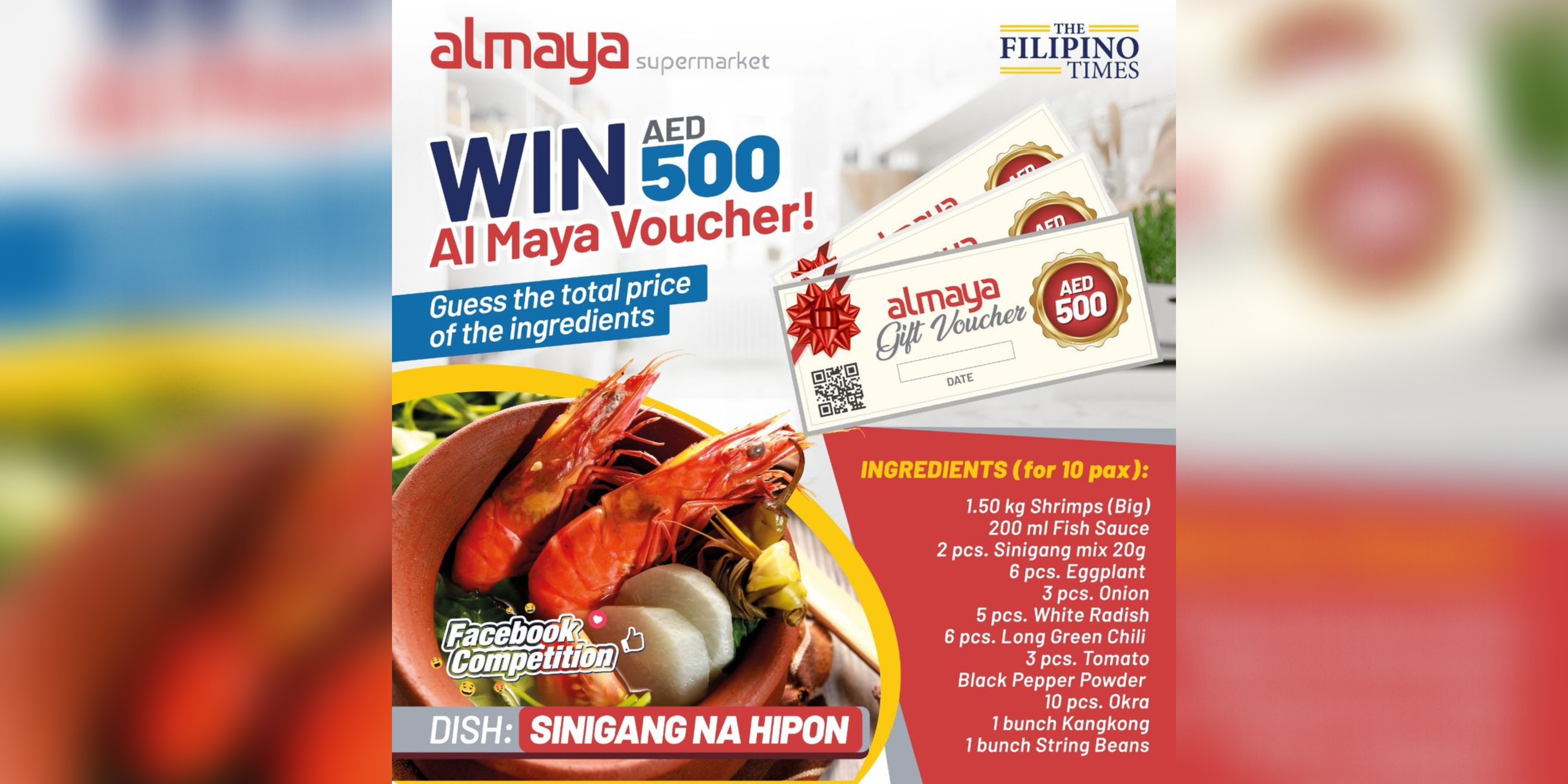 They have teamed up with The Filipino Times to launch the “Guess the total Price of the ingredients” Facebook competition where they will be giving away 500 AED worth of gift voucher to The Filipino Times readers and Al Maya customers who can guess the correct total price of ingredients for cooking Sinignang na Hipon that is good for 10 people. The mechanics to join are simple.