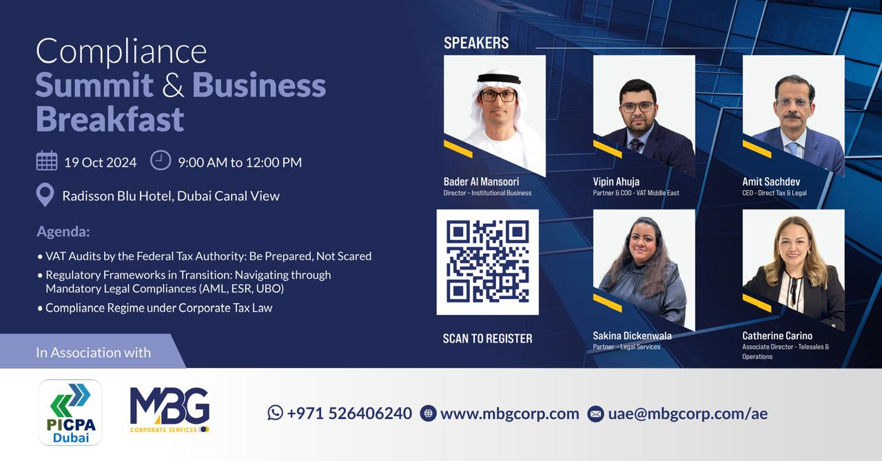 PICPA-Dubai’s “Compliance Summit & Business Breakfast” will be held from 9am to 12pm.