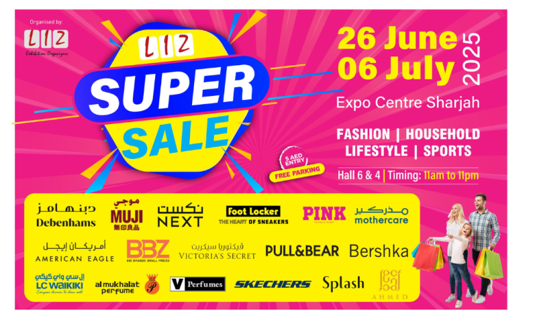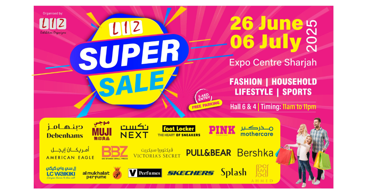 From June 26 to July 6, everyone is welcome to enjoy incredible discounts at the Liz Super Sale, happening at Expo Centre Sharjah Halls 6 and 4, open daily from 11 am to 11 pm.