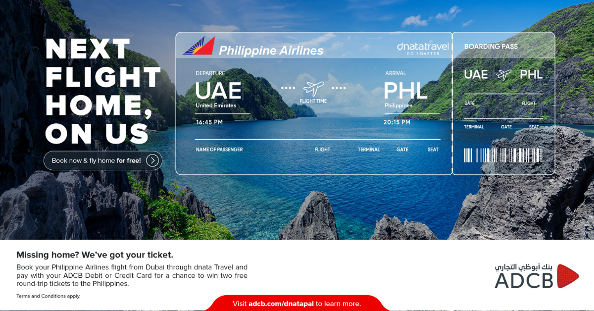 Simply book any Philippine Airlines flight from Dubai to the Philippines through any dnata Travel outlet and pay with your ADCB Debit or Credit Card. Each booking gives you a chance to win a complimentary roundtrip ticket to the Philippines!