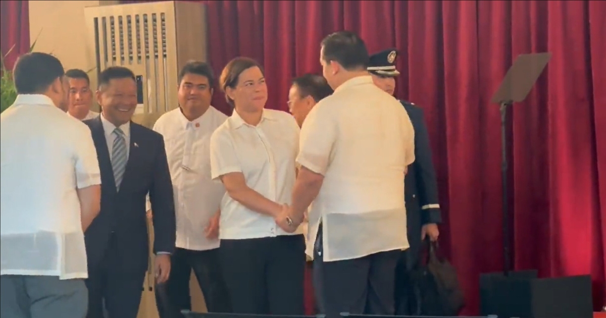 LOOK: VP @indaysara and House Speaker @MartinRomualdez shake hands and seem to have a friendly conversation after Pres @bongbongmarcos pre departure speech for Malaysia @gmanews @gmanewsbreaking pic.twitter.com/qzOEXjM5LK